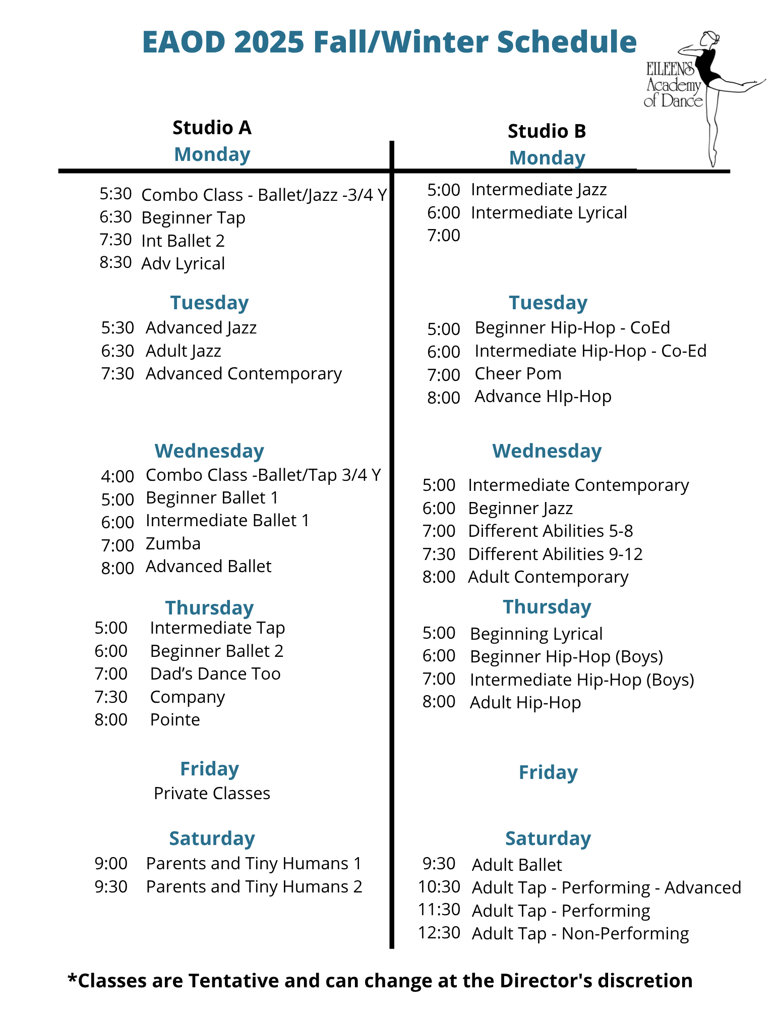 At Eileen’s Academy of Dance, our small classes are one of the many things that set us apart. Smaller classes enable each student to actively participate and engage in the class, which provides a stimulating and supportive learning environment.
